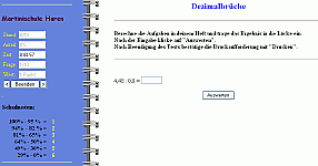von Dezimalbrüchen wird abgetestet. Nach der Eingabe