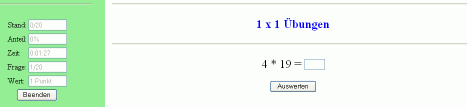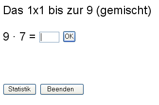 mit beliebig-stelligen Zahlen abgearbeitet werden. Die Erfolgsquote wird gespeichert und beim nächsten Start wieder angezeigt.