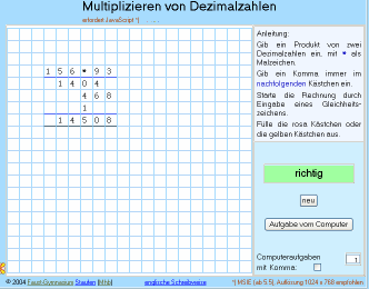 .Mit diesem Applet kann man das schriftliche Rechnen üben.